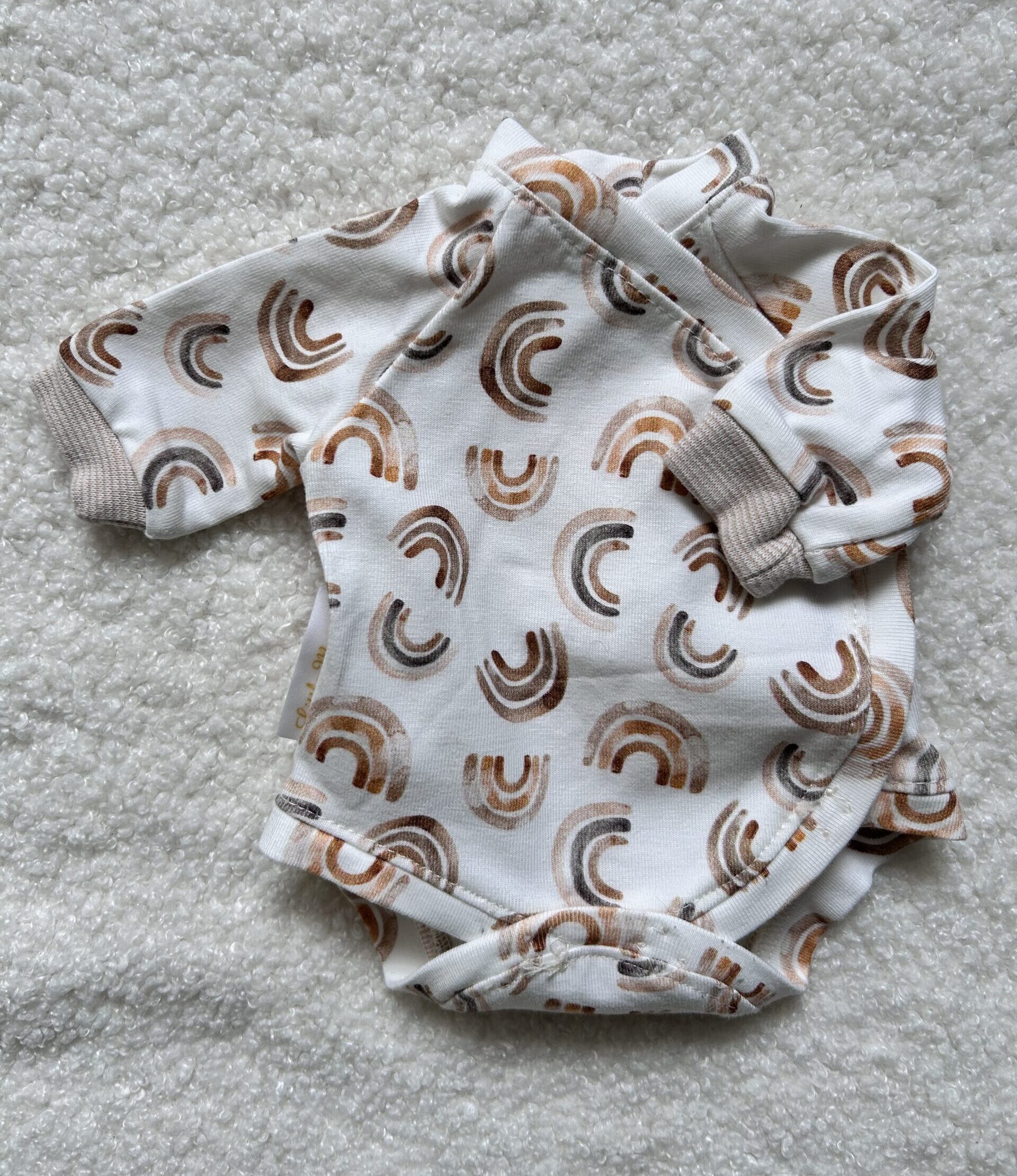 De rompertjes van Little Maeve zijn gemaakt van zachte, rekbare, katoenen tricot stof. Gedeeltelijk zijn deze in verschillende maten op voorraad. Verder is er de mogelijkheid om te kiezen uit diverse beschikbare printjes of effen ajour tricot in diverse kleuren.
